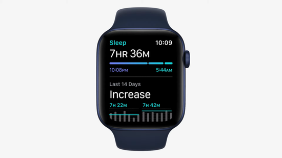 watchOS8在Sleep这款应用的基础下推出全新的监测项目,过往的Sleep是通过跟踪使用者的睡眠时长、心率和血氧饱和度等指标帮助其达到自身的睡眠目标。新增的呼吸速率监测项目可以让AppleWatch跟踪使用者睡眠时的呼吸速率,呼吸速率在某一程度上反映了使用者整体健康状况,在这一点上,watchOS8的睡眠监测功能将变得更加强大。