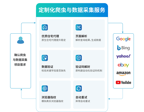 随着全球贸易一体化进程加快,企业对海外搜索引擎、电商平台、社交媒体等场景的数据需求日益激增。据市场研究报告显示,数据抓取服务已成为数据analytics领域的快速增长板块,广泛应用于市场竞争情报、消费者洞察、AI模型训练等核心场景。